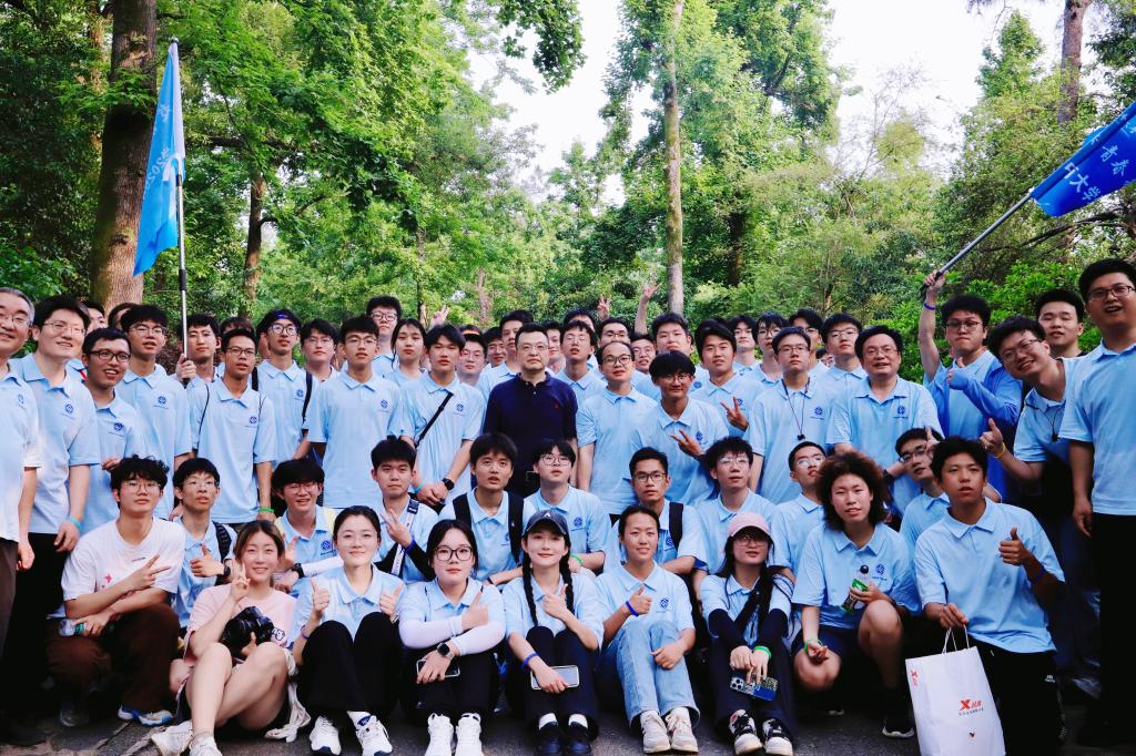共计150余名师生,与校长李建成一起,同登岳麓山、共话成长志。