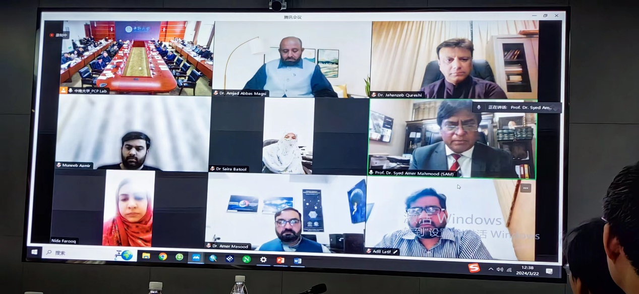 副校长郭学益教授、国际合作与交流处处长殷刚教授、校科研部副部长甘雪萍教授、巴方旁遮普大学校学术委员会主席Amjad Abbas Magsi教授、空间科学性系Syed Amer Mahmood教授及项目共同承担单位相关负责人等参加会议。